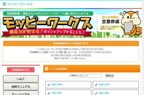 モッピーワークスでクラウドソーシングやってみた!どこにある?記事作成で稼ぐ方法は?